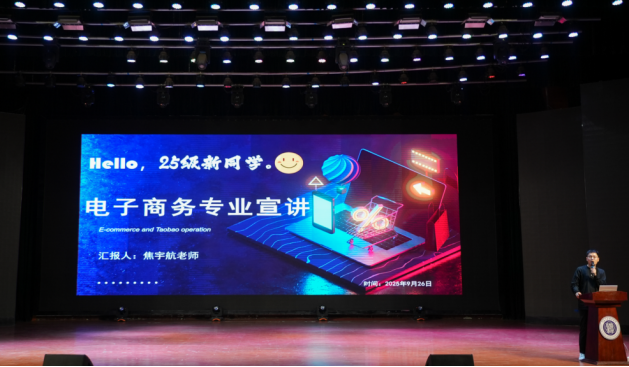 作为活动的核心环节,各专业认知宣讲成为了新生们关注的焦点。焦宇航、朱小雨、翟钰镤、王玮珵等资深教师分别就电子商务、网络营销与直播电商、现代物流管理、跨境电子商务四大专业进行了深入浅出的讲解。他们不仅介绍了专业的课程设置与教学内容,还分享了行业最新动态与实战经验,为新生们点亮了专业学习的明灯,激发了他们探索未知的热情。