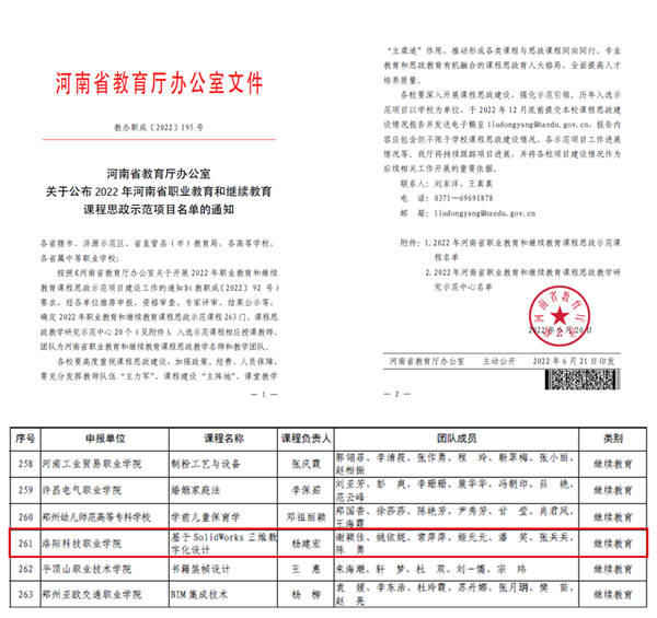 2022年,谢颖佳、常萍萍等8名教师被河南省教育厅认定为河南省继续教育课程思政教学名师和教学团队