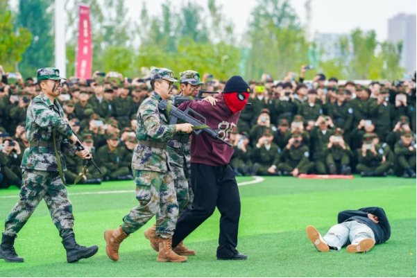在紧张的反恐演习中,学子们身着特警战术装备,全副武装,分组行动,展现出高超的侦察与搜索技巧,展开了一场惊心动魄的围捕行动;同时运用所学的反恐战术与技能,圆满完成演习任务。此次反恐演习不仅是一次对学子们反恐技能与实战能力的全面检验,更是一次对他们心理素质与团队协作能力的深度锤炼。在演习过程中,学子们展现出了高度的责任感与使命感,不畏艰难,敢于担当,用实际行动诠释了新时代青年的英勇与无畏。