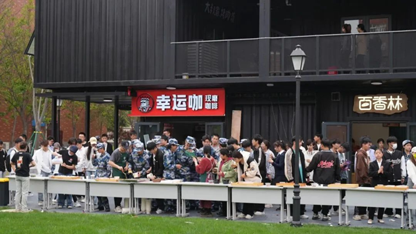 距离开幕仪式还有一小时,广场上就挤满了翘首以待的学生。歌舞暖场,喜迎洛科学子,温馨舒适的商业环境、免费品尝的各类美食、别具一格的装修风格、吸引了众多洛科学子驻足。