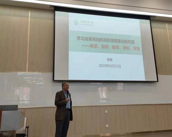 在整个报告交流活动中,李辉教授主讲的《学习成果导向的高职课程建设新思路——体系、目标、教学、评价、评审》主要围绕“岗课赛证”综合育人给予课程改革方向的实践指引,以“岗”为起点,“课”为支点,“赛”为高点,“证”为落点,相互关联、互为融通,产出导向OBE培养体系,明晰专业学习成果,细化课程目标,落实课程教学,建立基于OBE的教学大纲,明确课程目标与毕业要求指标点的关系及课程目标与教学内容、方法的关系,并针对课程知识点和能力点,设计课程考核方式和评分标准。最终使基于OBE的教学大纲成为规范教师教学行为,指导学生学习行为的契约性文件。