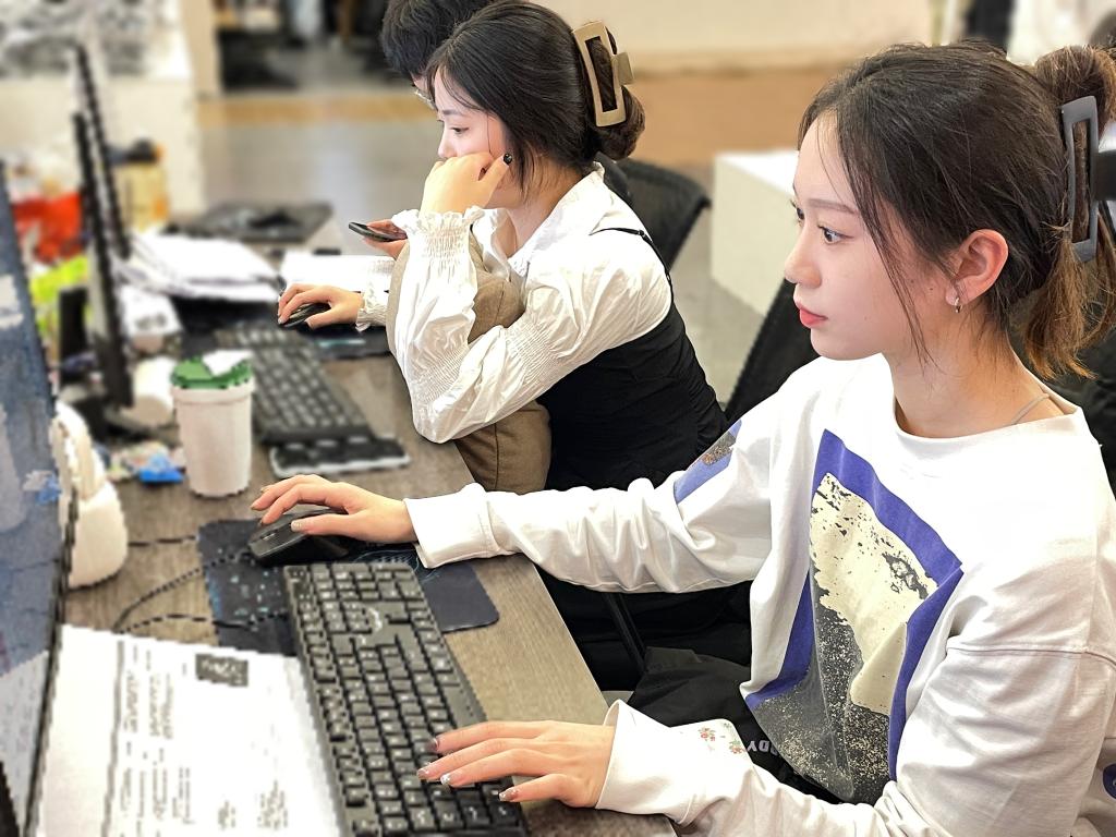由于网络购物突破时空限制,全天都可进行,所以客服需要时刻在线。同学们被分成不同班次,几个班次有效衔接,确保客服时时在线。同学们一改往日松弛面貌,聚精会神地盯着屏幕。不停闪动的头像,此起彼伏的键盘声,转接工作的说话声,构成一幅繁忙的工作画面。实训期间,学生认真负责、操作熟练,从容解答客户疑惑,在实战中表现优异,展现良好的专业技能和职业素养,学生们在整个“双十一”过程中,秉承“客户至上”的理念,明确一切从客户角度出发,为客户提供高质量、全方位服务的信念。同学们在面对众多买家的询问临危不乱,从容淡定地用最标准的礼貌用语回复买家,让买家买得舒心也放心。