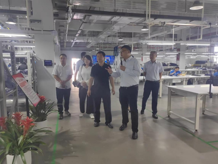 随后,刘茂钦一行来到位于洛龙区的海澜集团服装产业基地。在洛龙区副区长赵志良、伊滨区管委会副主任马亚利、海澜集团总负责人崔高等企业领导的陪同下,刘茂钦一行实地走访生产车间,了解最先进的服装生产工艺与加工流程。