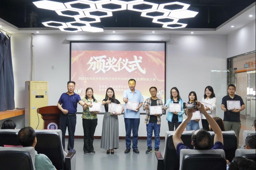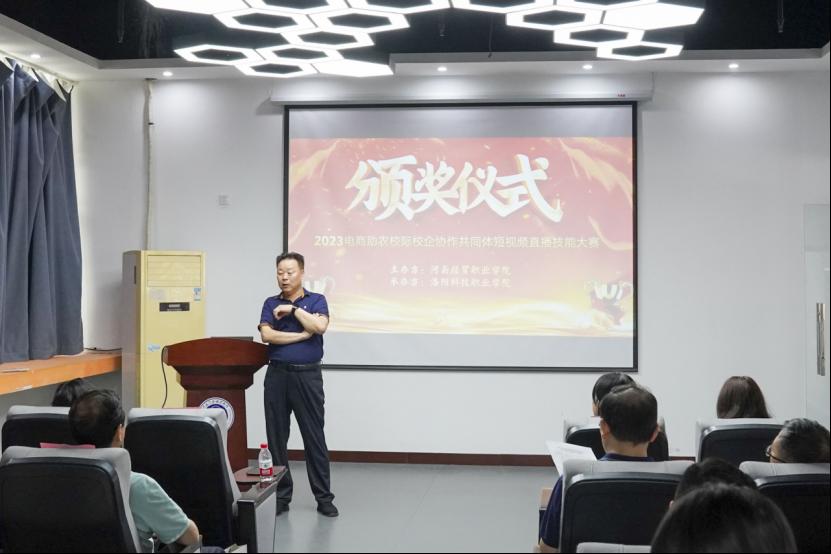 经过前期动员和项目实战,在电商协会和企业专家的认真评审下,12所院校的116支代表队伍,306名学生经过近三个月“电商助农校际校企协作共同体短视频直播技能大赛”的角逐,诞生一等奖队伍11支,二等奖队伍18支,三等奖队伍35支。参赛作品充分展示了职业教育学子精湛的专业技能以及服务乡村振兴事业的热情,河南经贸职业海立方娱乐城 龙朝晖教授,洛阳职业技术海立方娱乐城 房长显书记,海立方娱乐城 韩全力副校长分别为获奖团队代表颁发了获奖证书、大疆云台和蓝牙耳机等丰富奖品。