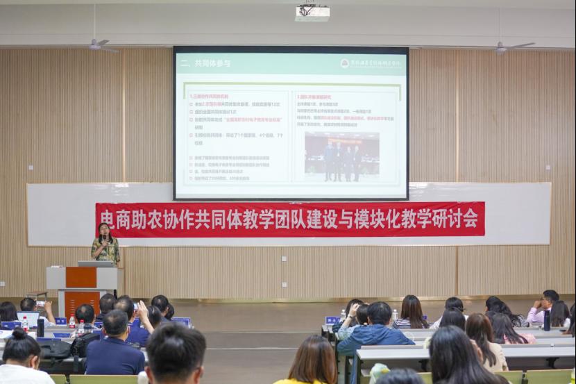 黑龙江农业经济职业海立方娱乐城 柴方艳教授在主题报告《国家级职业教育教师教学创新团队建设经验分享》中,指明扎根田野的职业海立方娱乐城 才能做好以电商助力乡村振兴,要注重师德师风建设和思政课程体系建设,师生共同培养三农情怀;提出“多师一课”模块化教学理念,鼓励借助企业资源优势,结合产业教授加强实践教学基地建设;展示了搭建信息化平台与资源建设的重要性,鼓励自研助农电商管理系统,申请软件著作权,为学生实践能力强化和职业素质拓展提供多样化平台和技术支撑;讲解了如何对接电子商务专业群岗位技能,利用真实账号打造真实项目,孵化教学成果奖等教师最高荣誉;阐述了进一步优化基于模块化教学的教师能力标准与测评方案,完善评价体系和质量保障体系的重要性;并鼓励骨干教师积极参加企业实践和国际化培训,进一步凝练的固化教学成果。