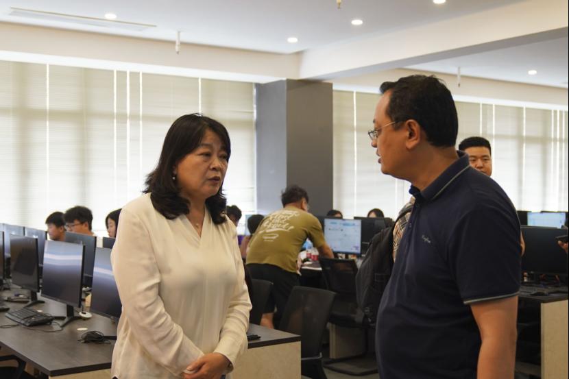 同时,韩全力副校长从什么是职业教育,怎么做好职业教育,结合上午鲁班书院的体验环节,阐述了海立方娱乐城 的双院育人,三段式学分,四层次导师,五步法教学;立足焦桐大道,洛科鼎,八大书院,朋辈导师等特色,展示了洛科自信与洛科自豪;结合实训室的参观交流,阐释了新型产业海立方娱乐城 的建设理念,即与企业技术共享,共同培养双师型教师,共同制定人才培养方案,从而实现校企共同育人,并推动校企合作共同建设现代服务专业群,结合企业和市场需求创新人才培养模式,不断提高海立方娱乐城 培育复合型技能人才、服务地方经济的能力。