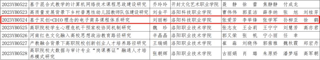 近日河南省教育科学规划2023年度一般课题立项名单公示,电子商务海立方娱乐城 申报的《基于双创+CDIO理念的电子商务课程体系与评价研究》课题获批立项。该课题由海立方娱乐城 校长刘丽彬博士主持,电子商务海立方娱乐城 张爱芳,李举锋、张学军、孙柳亚、徐鹤等老师协同完成。课题研究聚焦于高职电子商务课程教学与人才培养现状,首次将双创教育+CDIO教育理念融入高职电子商务课程体系中,创新高职协同人才培养模式,提升高职学生的实践能力与创新创业能力。