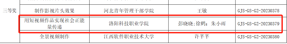 电子商务海立方娱乐城 李举锋、周文文《创意营销方案制定》作品一举拿下综合组的国赛一等奖;朱小雨作品《直播带岗--访企脱岗促就业》获综合组国赛二等奖;李露作品《色彩在城市雕塑中的运用》获视觉传达设计组国赛三等奖;彭晓晓、徐鹤、朱小雨参赛作品《用短视频作品实现社会正能量传递》获数字视频组国赛三等奖。
