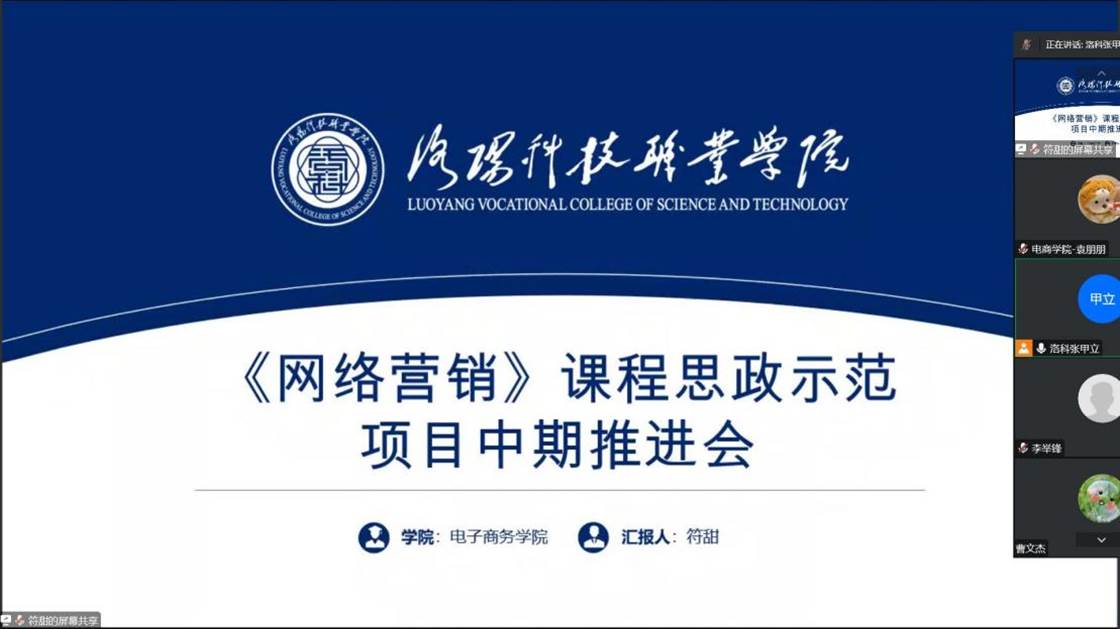 为落实立德树人根本任务,深入挖掘专业课程各教学环节育人功能,强化示范引领和资源共享,把思想政治工作贯穿教育教学全过程,形成各类课程与思政课程同向同行、专业教育和思政教育有机融合的协同育人大格局。电子商务海立方娱乐城 于10月7日下午在线上召开《网络营销》课程思政示范项目中期推进会,会议由电子商务海立方娱乐城 副院长张甲立主持,电子商务海立方娱乐城 全体教师参加会议,李超教授、张学军教授、沐潮教授、王学东教授为本项目做专业指导和实施建议。