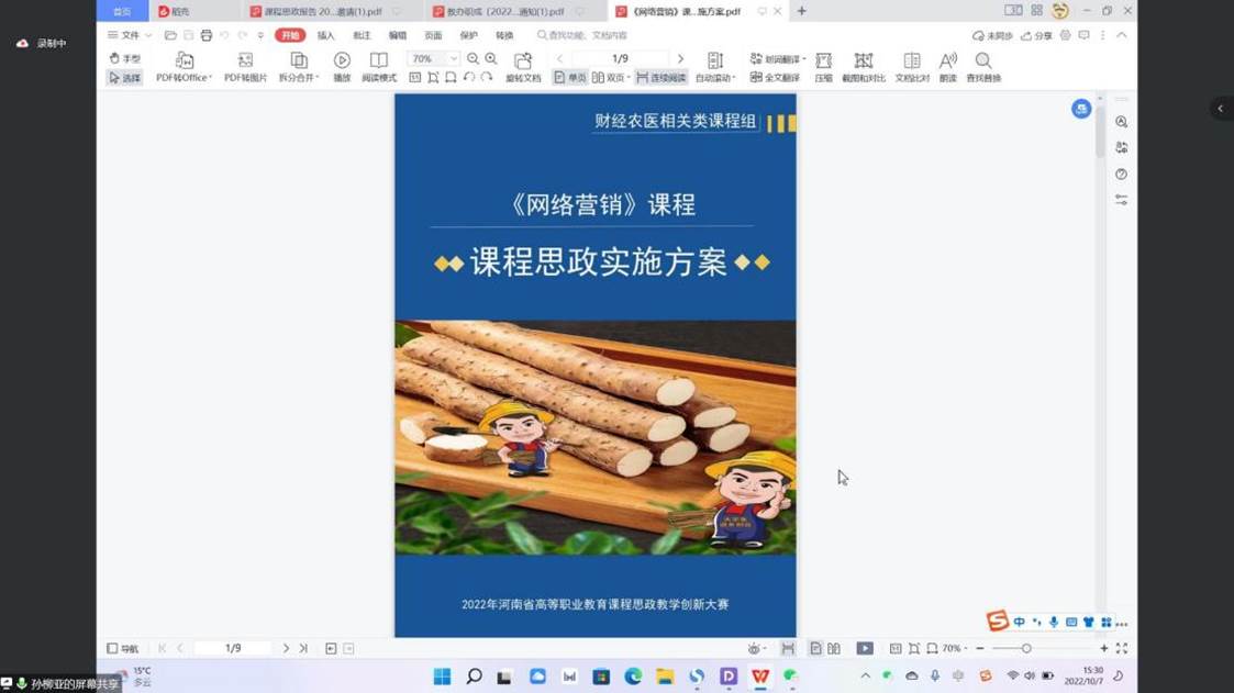 会上,孙柳亚老师对《网络营销》课程思政教学比赛做汇报。教学实施方案围绕思政融入教学目标、思政融入教学内容、思政融入教学活动、思政融入教学评价、思政融入教学资源五大模块展开,立足乡村振兴战略,通过教学目标与教学内容、教学活动的结合,并将思政纳入全过程考核的评价方式,力求做到系统化,体系化,整体化的实施方案。