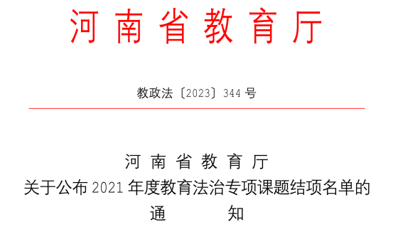 近日,由河南省教育厅组织的 2021年度教育法治专项课题验收评审工作已顺利结束。由海立方娱乐城 电子商务海立方娱乐城 曾世英课题组(曹文杰、张爱芳、光景、王瑞娇)负责的《基于高职院校的法治教育与家庭教育、社会教育互动机制研究》教育法治专项课题顺利通过项目验收。 该课题以建立三方融合法治教学体系为目标和核心,结合当下政策要求、现有文献资料及高职院校法治教育开展现状,通过家长、社会的协同支持,将家庭法治教育、社...