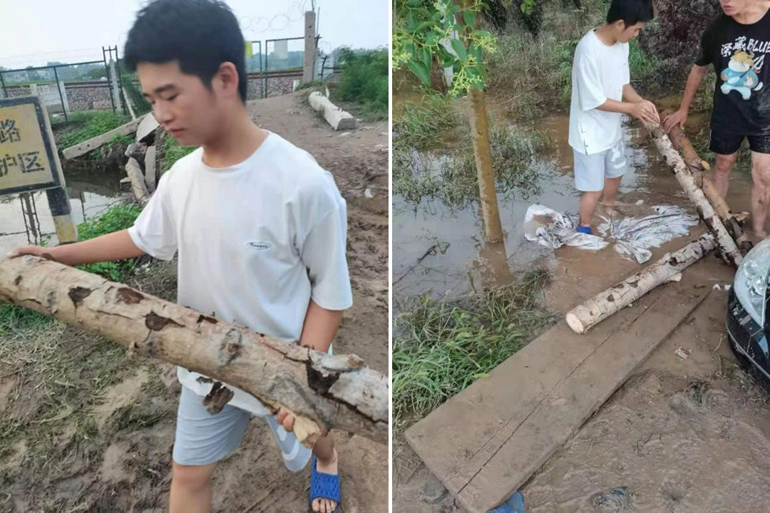 20高职建工01班张羽丰同学等,他们也义无反顾,在家乡的抗洪救援中,挥洒着青春的力量。