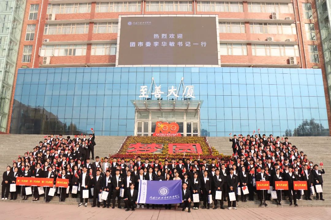 第一次全体代表大会结束,全体学生代表、校团委老师等人移步至善大厦合影留念。“请党放心,强国有我!”嘹亮的口号喊出我们青春向上的活力与朝气。