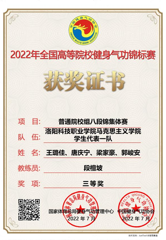 两支学生参赛队伍均获得了集体八段锦三等奖。