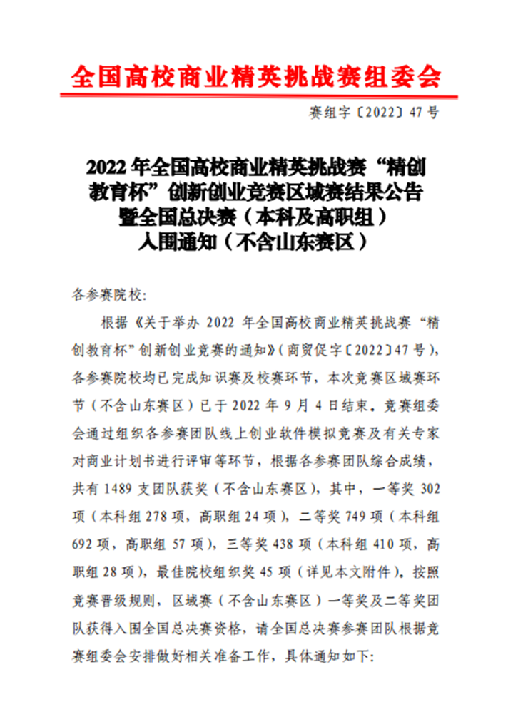 本次区域赛共有来自全国30个省、自治区、直辖市的300多所院校,近1500支团队,万余名师生共同参与。下一阶段,获得二等奖的6支团队将参加10月下旬举办的全国高校商业精英挑战赛创新创业竞赛全国总决赛,届时,各参赛团队将对入围精英赛资格展开新一轮激烈角逐。