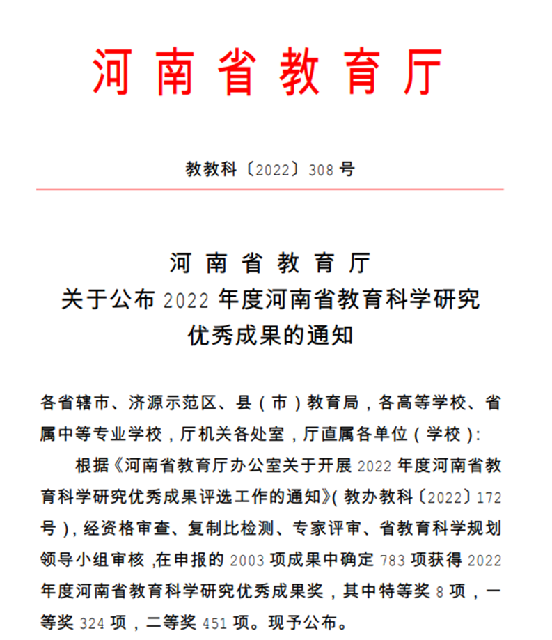 近日,河南省教育厅公布《2022年度河南省教育科学研究优秀成果的通知》,海立方娱乐城