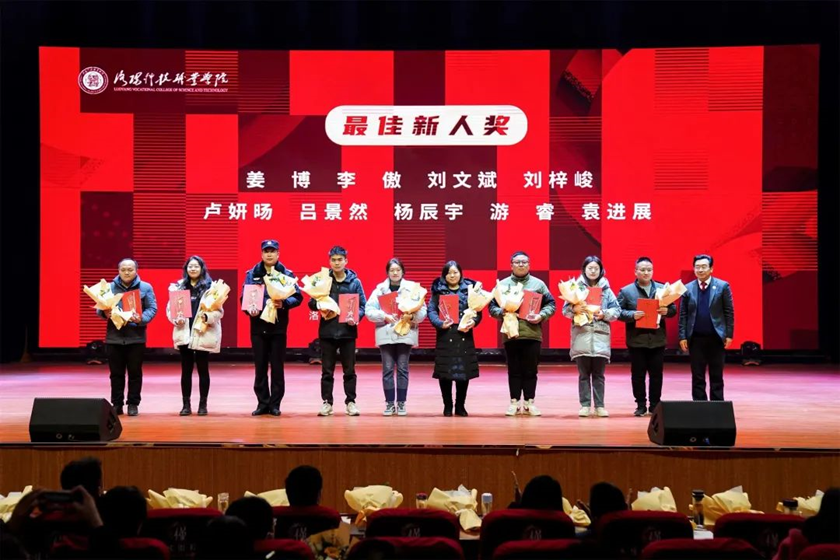 会上,校领导依次为“年度绩优团队”“年度杰出员工”“年度最佳新人”颁发荣誉证书及奖杯,并送上鲜花。