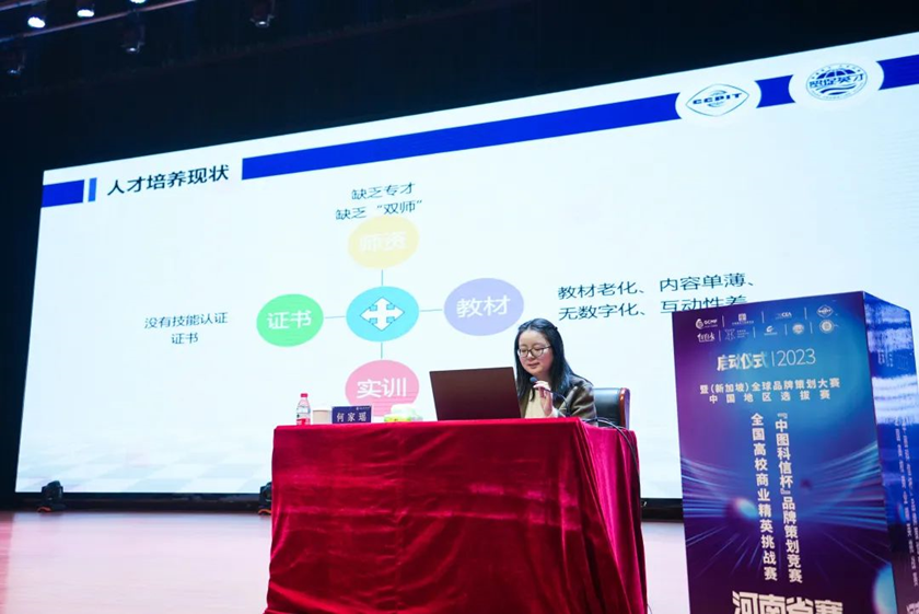 邀请了中国贸促会商业行业委员会产教融合促进中心何家瑶以《踔厉前行十七年——品牌人才教育新进展,助力品牌强国新战略》为主题展开了主题演讲,河南科技大学商海立方娱乐城