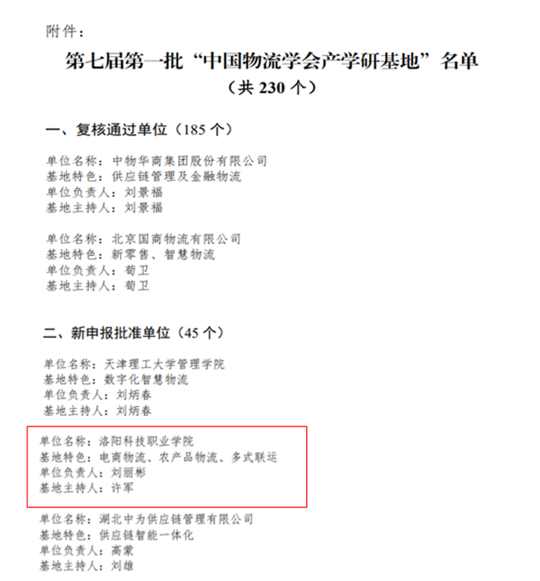 中国物流学会产学研基地以电商物流、农产品物流、多式联运为特色,坚持面向行业、面向企业、面向政府需求,积极融入国家战略、融入区域发展和融入行业进步,瞄准一带一路、建设全国重要的区域物流枢纽和豫西北多式联运集散中心、洛阳自贸区建设等战略,推动仓储物流企业与电商平台和农产品直销体系对接,促进冷链物流线上线下融合发展,打造国内一流区域经济发展研究智库,创建洛阳地区产业进步与企业创新高水平综合服务平台。