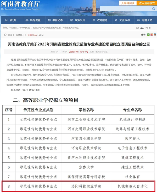 机械制造及自动化专业经过专家初审、复审及评审委员会集中评议,顺利通过2023年河南省职业教育示范性专业点建设项目审批,实现了海立方娱乐城