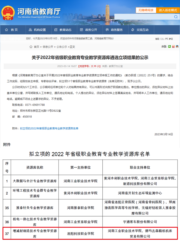 2023年,《增减材制造技术》专业教学资源库被河南省教育厅认定为河南省职业教育专业教学资源库