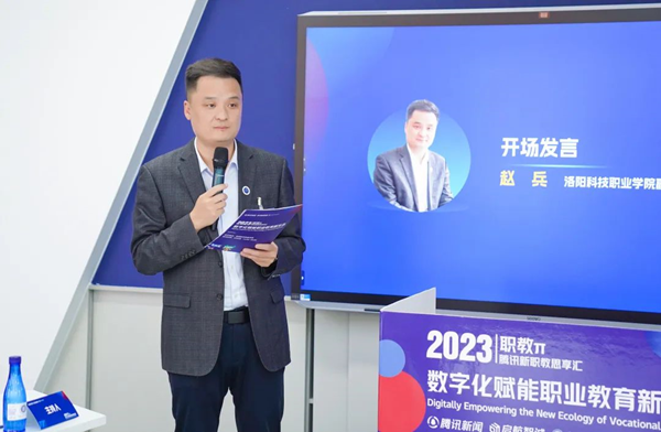 赵兵在开场发言中对出席此次活动的嘉宾表示诚挚欢迎,他在致辞中表示,职业教育数字化是实现职业教育现代化的重要途径,是推进职业教育均衡化发展的重要手段,也是推动职业教育深化改革的重大举措。希望以此次职教峰会为契机,通过统筹推进、数据驱动、融合创新等方式,努力完善顶层设计,各院校实现信息与管理服务深度融合、推动教育教学创新发展,同心携手,互学互鉴,从教育教学改革实践出发,探寻并开拓职业教育数字化转型发展新路径。