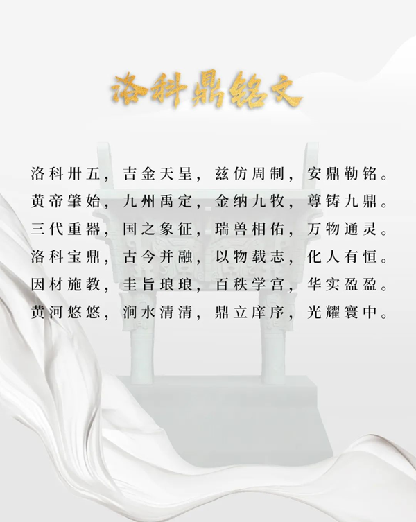 教授、博士、硕导、西周青铜器研究专家刘余力,研究员、洛阳市文物考古研究院汉魏研究室主任、中国考古学会秦汉专业委员会委员、郑州大学硕导严辉等学者组成主创团队,与辞赋专家一道,集体创作了《洛科鼎铭文》。《洛科鼎铭文》规范严格,深邃隽永,彰显了洛科鼎作为洛科精神图腾的深远意义。