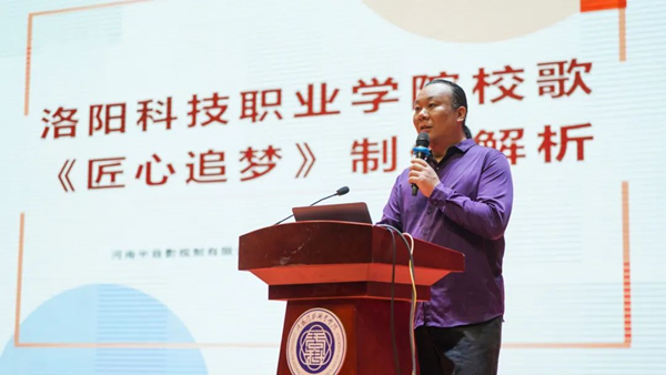 在雄壮的国歌声中,校歌发布会正式拉开帷幕。校歌的制作方河南半音影视制作有限公司创始人、高级录音工程师盛明兴回顾了校歌录制历程。他表示,校歌的创作灵感来源于洛科的文化底蕴和办学理念,歌曲中融入了诸多海立方娱乐城 特色,歌词内容涉及海立方娱乐城 属地、校训精神、办学特色、美好愿景等元素。《匠心追梦》旋律优美,歌词励志,寓意深刻,是全国唯一一首引入一级国宝文物贾湖骨笛演奏的高校校歌,充分体现出洛科的文化自信,是洛科师生们宝贵的精神财富,催人奋进,给人力量。