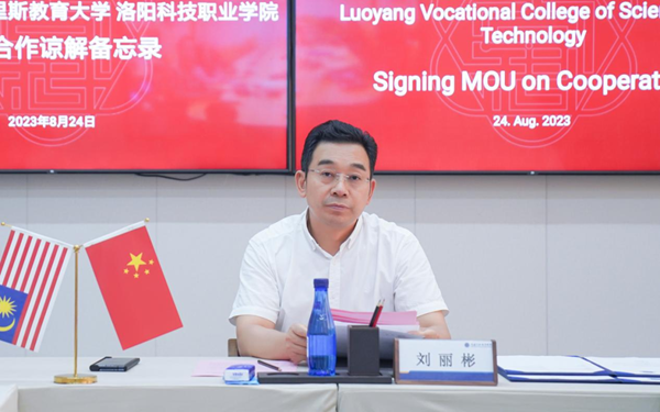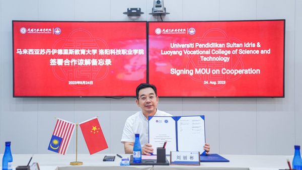 To meet the diverse educational demands of society, introduce high-quality educational resources from abroad, strengthen exchange and collaboration with international universities, significantly enhance the school’s level of internationalized management and capacity for cultivating international talents, propel the school’s transformative development, further broaden the international perspectives of both faculty and students, and establish a broader platform for development, a Memorandum of Understanding was signed on August 24th between Luoyang Vocational College of Science and Technology and Sultan Idris Education University Malaysia.