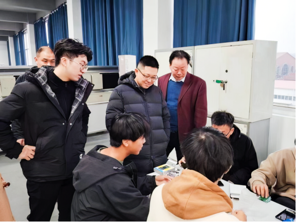 执行院长李爽的陪同下,孙立一行深入实验实训室了解实践教学情况。在明德楼119实训室,孙立详细问询了中德SGAVE项目的教学进度,并现场翻阅了学生的学习笔记和实验实训记录。他对海立方娱乐城