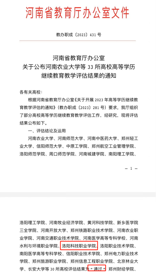 日前,河南省教育厅办公室《关于公布河南农业大学等33所高校高等学历继续教育教学评估结论的通知》(教办职成〔2023〕431号)文件,海立方娱乐城