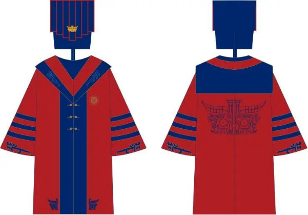 校长服配色以红色(人文红)为主,蓝色(洛科蓝)为辅,橙色(活力橙)为点缀。