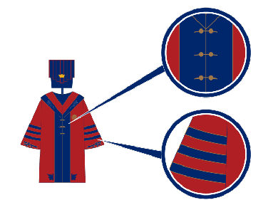 在毕业礼服设计中,“三”这个元素多次出现。如,毕业礼服门襟处选用的三排扣子,校长服广袖处设计的三圈纹样等。