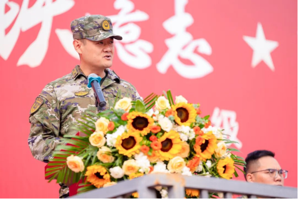 刘珑代表全体教官在发言中表示,军训是一次磨砺意志的挑战,也是培养团队精神的重要契机。希望全体参训学生珍惜军训机会,展现出强大的凝聚力和战斗力,以饱满的热情和顽强的毅力迎接挑战,以崭新的姿态和昂扬的斗志开启新的学习与生活篇章。