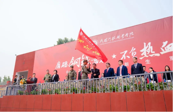 军训师授旗,并宣布2024级学生军训正式开始。这一刻,热血沸腾,军魂激荡,青春的汗水将浇灌出更加坚定的信念和勇气,期待每一位参训学子在军训中锤炼自我,迎接更加辉煌的未来!