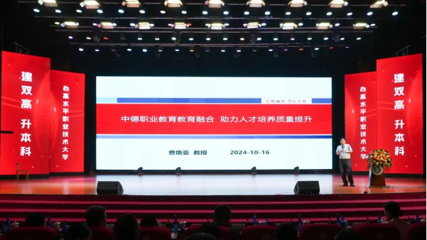 院长曹焕亚教授,以《中德职业教育融合,助力人才培养质量提升》为题进行了精彩的分享。他从精密制造领域出发,深入剖析了企业对人才需求的转变,对比了中德两国职业教育的特点,并总结了中德职业教育融合的有效途径和方法。曹教授的分享不仅拓宽了学生的视野,使他们更加关注能力的提升和迁移,也为海立方娱乐城