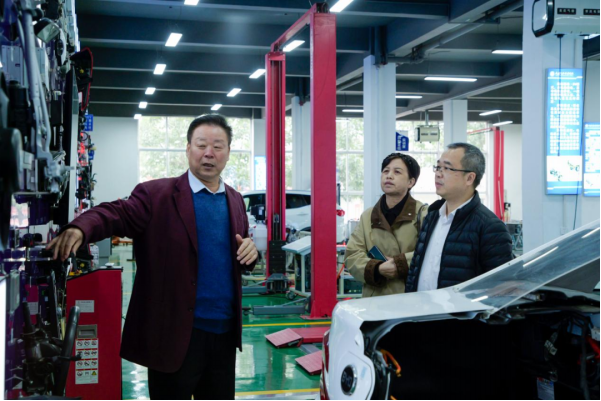 至善大厦学生服务中心、实训楼新能源汽车实训室、鲁班书院、杏园餐厅等地进行调研,实地了解洛科校园文化、书院育人及产教融合特色项目。