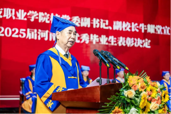 校党委副书记、副校长牛耀堂郑重宣读了《河南省教育厅办公室关于公布2025届河南省优秀大中专毕业生认定结果的通知》。