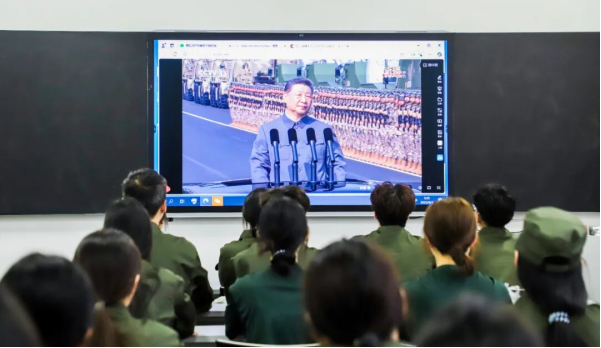 全校师生近2万人分别在新民学堂、多媒体教室等观看盛会,让滚烫的青春与伟大的时刻同频共振,在震撼与感动中见证人民军队的钢铁雄姿,感受祖国强盛的磅礴力量!