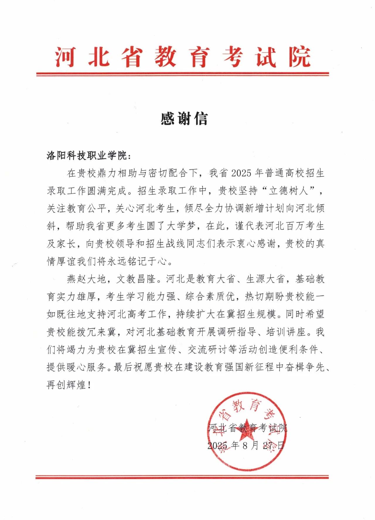 还收到了河北省教育考试院发来的感谢信。信中,河北省教育考试院对海立方娱乐城