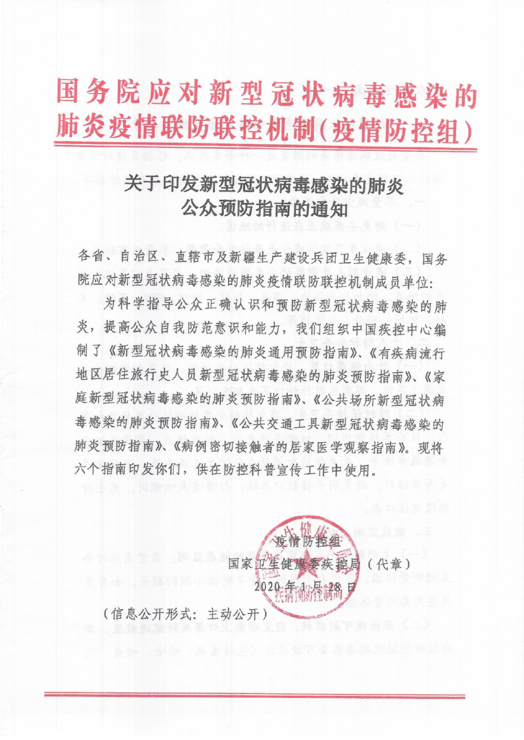 国家卫生健康委:新型冠状病毒感染的肺炎公众预防指南