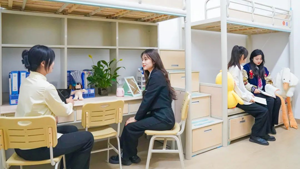 每日打扫宿舍卫生,物品摆放整齐,定时开窗通风,整洁干净无异味。