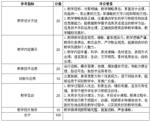 1.参赛教师可在任意一个参赛专业组别、类别里选择一门相关课程,拍摄制作长度在5—15分钟教学微课短片视频,作为参赛评比作品;
