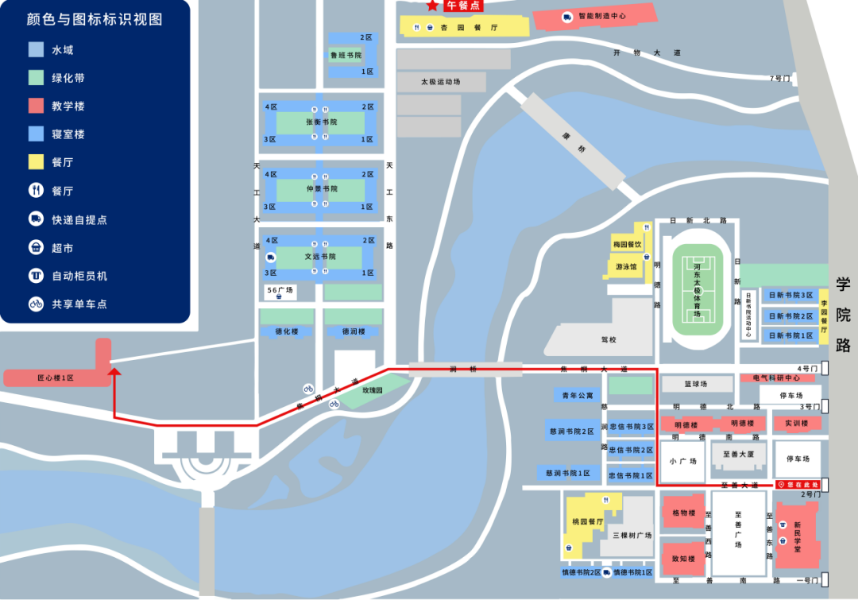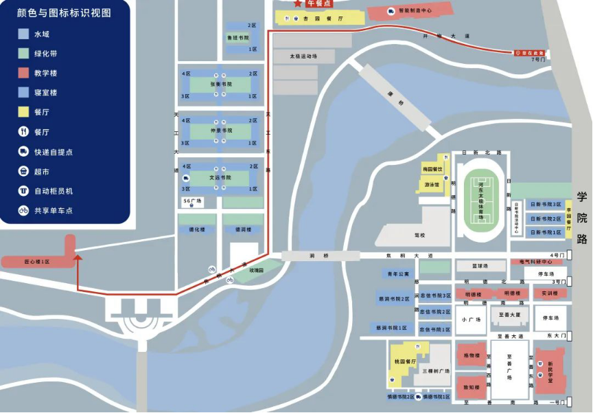 已将校园路线、考场布局、卫生间及餐厅位置、共享单车停放点以及紧急出口等信息在显眼位置予以公布。同时,我们还特别安排了热心的校园志愿者全程为您提供指引服务,确保您能够轻松找到所需地点。