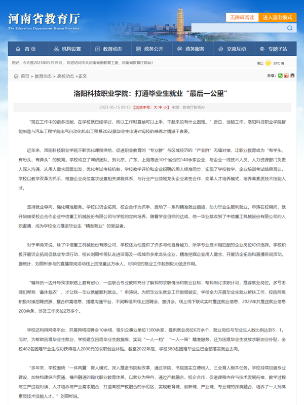 多措并举,千方百计为应届毕业生扩大就业,促进毕业生更加充分更高质量就业。得到了河南省教育厅以及中国教育报、河南日报、大河网、中原经济报等多家媒体报道。