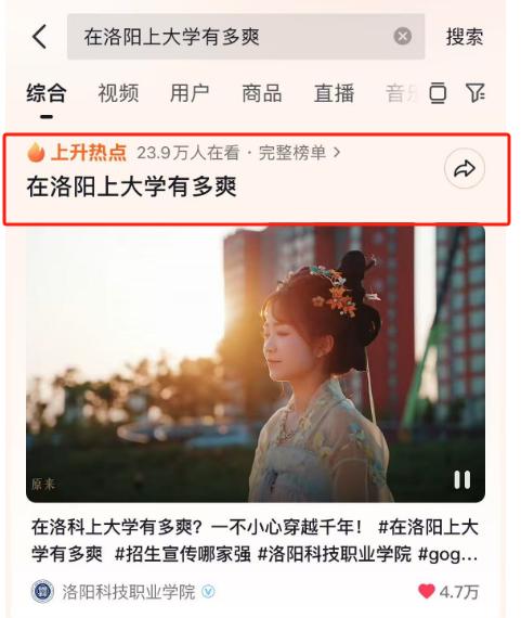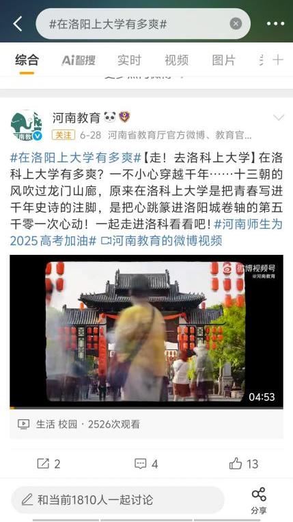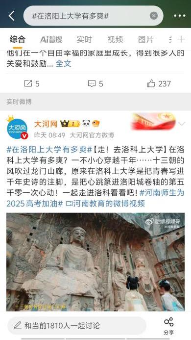 话题 #在洛阳上大学有多爽# 热度持续攀升