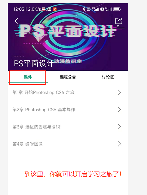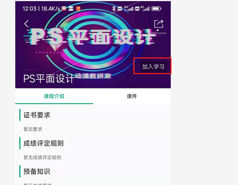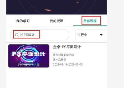 3.查找课程,在APP登入后海立方娱乐城,点击MOOC在【所有课程】搜索PS平面设计。
