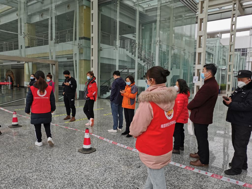 、为同学和老师们做点事,我觉得特别有意义。”经济系王大哲老师如是说。“现场老师和同学们都特别配合我们的工作,佩戴口罩、出示绿码、主动扫码、有序排队,能感受到大家的团结一心,希望能早日渡过难关,恢复线下教学。”统计系教工支部副书记王平平老师有感而发。