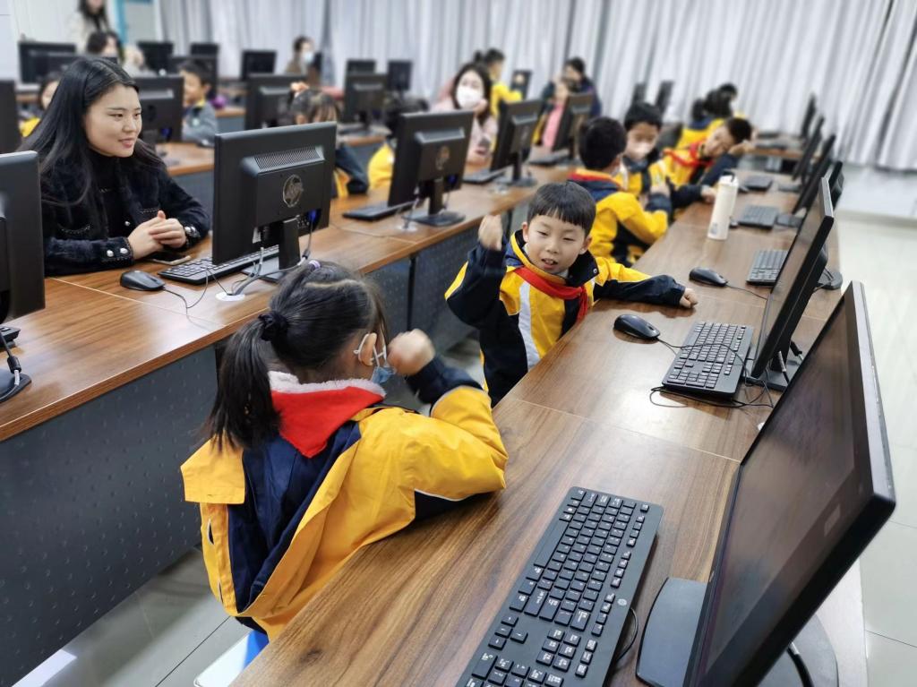 的国家级经济管理实验教学示范中心——经济统计大数据科学实验室,在统计系教工党支部书记康宁老师及研究生党员的带领下互动《有趣的统计》,一起走进随机王国、探索统计的奥秘,体会大数据时代统计为生活带来的变化和影响。随后,同学们登上南财的标志性建筑——琉球图书馆,参观校史展览馆,聆听南财六十余年发展的动人故事。接下来同学们来到大学生艺术中心,在社团成员的指导下,欣赏二胡琵琶等民乐演奏,在优美的《梁祝》中翩翩起舞,触摸篆刻方寸石章艺术,沉浸式感受中国优秀传统文化的魅力。最后一站打卡南财体育馆,热火朝天的投球、趣味盎然的游戏,体育馆里留下了孩子们阵阵欢笑和奔跑的身影。