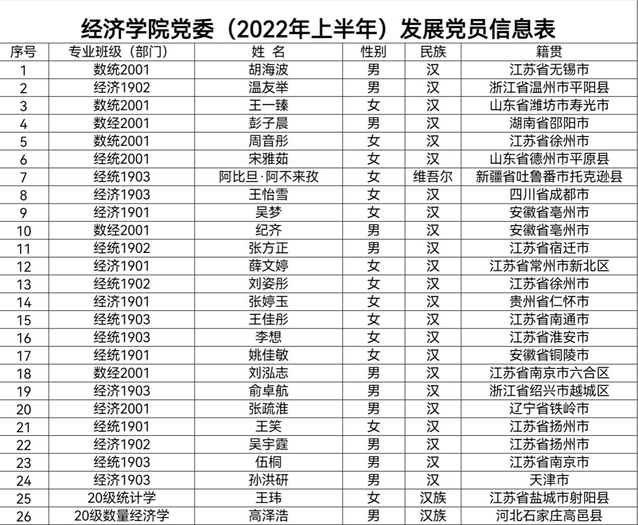 党委预审,拟接收胡海波等26名同志为中共预备党员。现将名单予以公示: